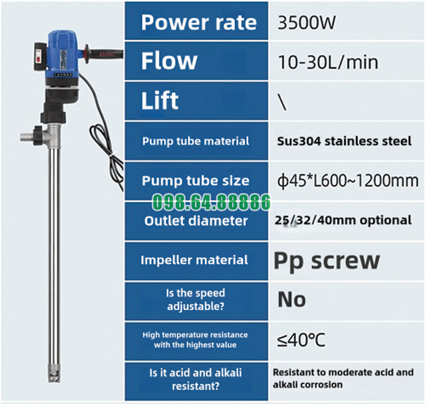 Trong nhiều ngành sản xuất hiện đại như thực phẩm, hóa chất, sơn, dược phẩm hay vật liệu công nghiệp, việc vận chuyển các loại chất lỏng có độ nhớt cao đòi hỏi thiết bị bơm phải đảm bảo hiệu suất, độ ổn định và độ bền cao. Bơm trục vít cầm tay cho chất lỏng đặc JDT-3500W-LG đáp ứng mọi yêu cầu khắt khe nhờ thiết kế tối ưu, công suất mạnh mẽ và khả năng xử lý hiệu quả các dung dịch sánh đặc.