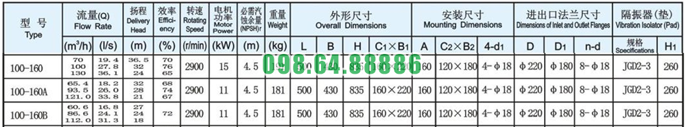 Máy bơm cấp nước trục đứng, bơm đa tầng cánh đứng ISG100-160, IRG100-160 15kw, 100m3, 32m