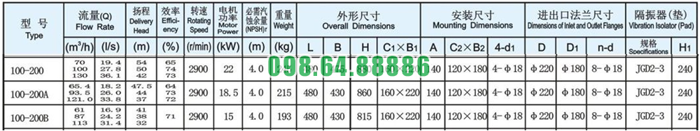 Máy bơm inline, bơm lùa, bơm lắp thẳng trục đứng ISG100-200, IRG100-200 22kw, 100m3, 50m