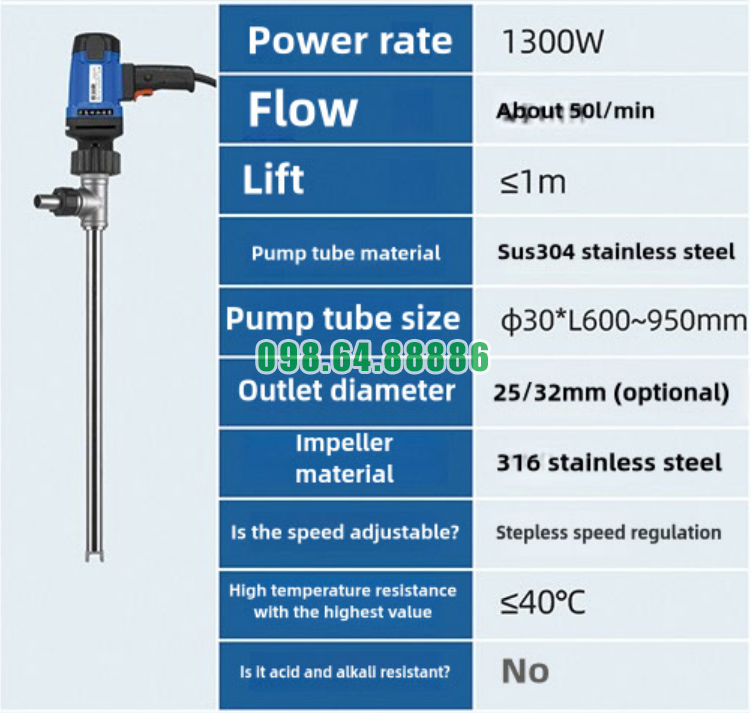 Cánh quạt được bố trí ở vị trí thấp trong thân bơm, kết hợp với trục bơm dài, cho phép Bơm thùng phuy JDT-1300W-30 SUS304 hút trực tiếp chất lỏng từ đáy thùng phuy. Nhờ đó, lượng chất lỏng tồn dư được giảm tối đa, nâng cao hiệu quả sử dụng nguyên liệu.