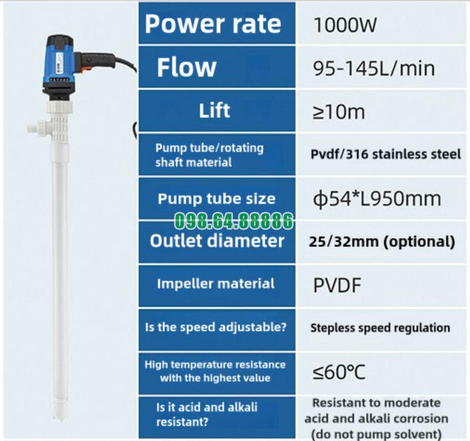 Bơm dầu công nghiệp thùng phuy model JDT-1000W-PVDF
