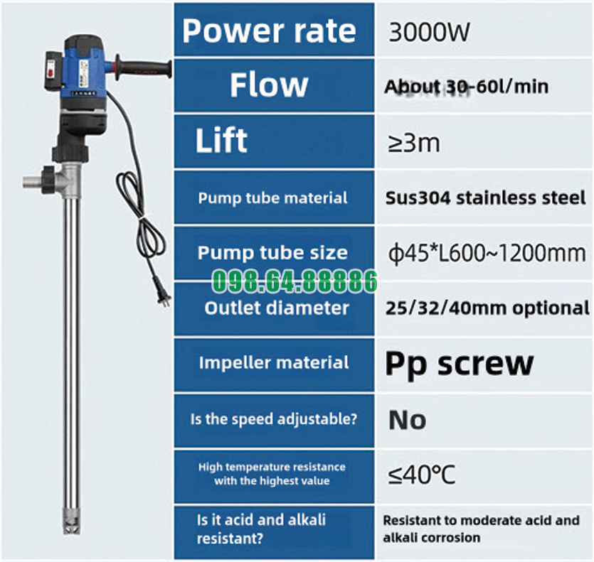 Có thể khẳng định, sự kết hợp giữa thép không gỉ SUS304 và nhựa PP chính là một trong những điểm mạnh cốt lõi giúp Bơm điện trục cong 160 – JDT-3000W-LG đạt được sự cân bằng giữa độ bền – hiệu suất – độ ổn định, đáp ứng tốt nhu cầu sử dụng lâu dài của doanh nghiệp công nghiệp.