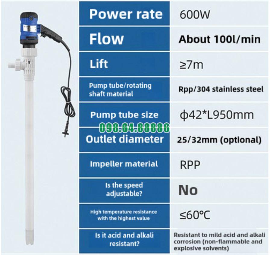 Máy bơm chuyển hóa chất an toàn không cháy nổ JDT-600W-RPP