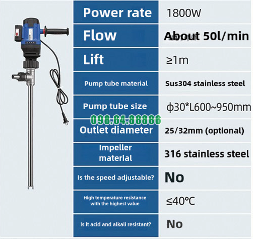 Cấu tạo cánh bơm inox 316 cho phép chịu được lực quay lớn từ động cơ 1800W. Điều này giúp máy duy trì hiệu suất ổn định khi làm việc liên tục, đặc biệt trong các xưởng sản xuất cần bơm dầu theo ca hoặc theo mẻ trong thời gian dài.