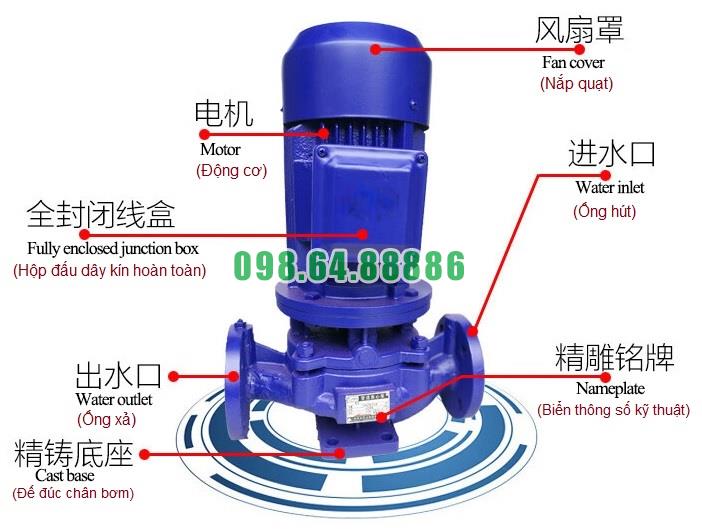Máy bơm lùa, bơm booster inline, bơm inline ISG65-200B, IRG65-200B, 5.5kw