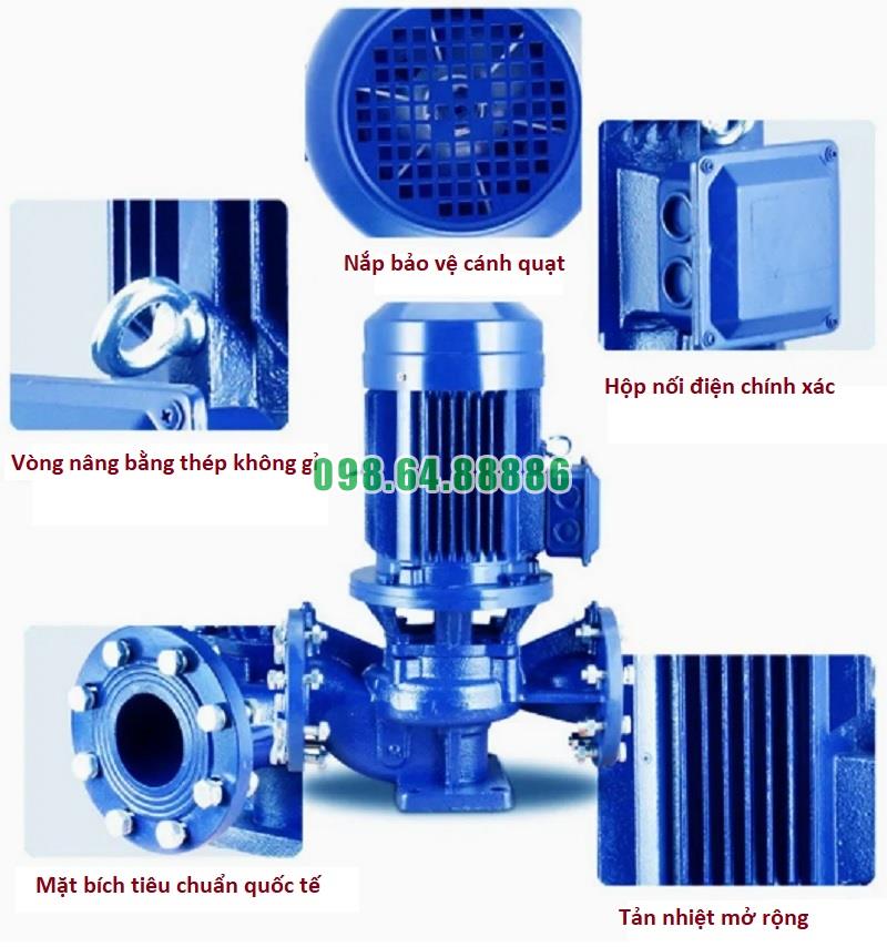 Máy bơm lùa trục đứng, bơm booster inline, inline ISG65-250, IRG65-250 15kw